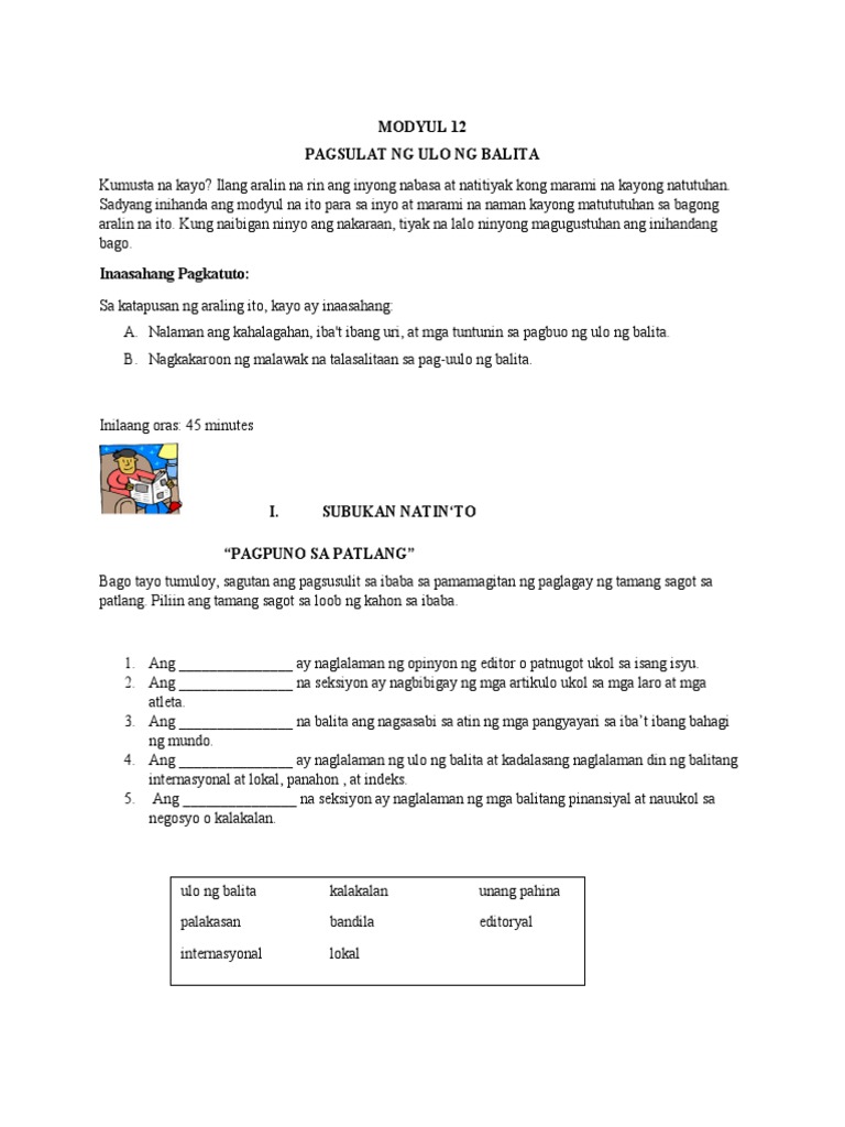 Modyul Sa Pagsulat Ng Ulo Ng Balita Pdf